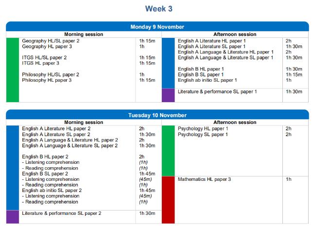 2020年11月考試將從10月23日開始,11月13日結束。以下是IBO官網目前公布的11月考試時間安排,隨著疫情發(fā)展情況,后續(xù)可能還會有所調整: