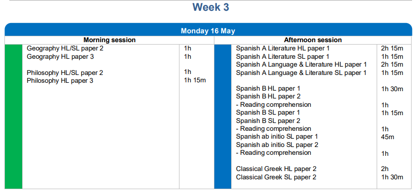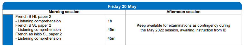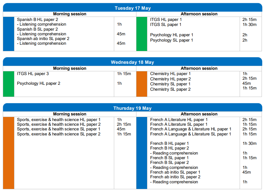 2022年IBDP考試時間表 5月