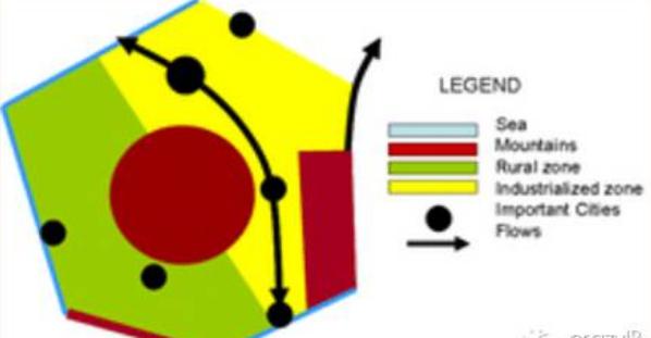 Chorems是1980年由Roger Brunet首先創(chuàng)建的超簡化拓撲圖,用于使用簡化的空間基元集來表示復雜的地理信息(包括人類地理)