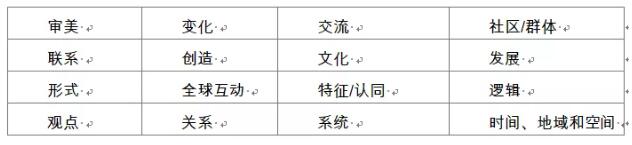 中學項目明確了要開展跨課程探索的16個重大概念。表格中顯示的這些重大概念出自中學項目的8個學科組,也代表著超越這些學科組界限的理解。