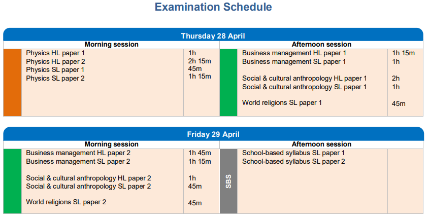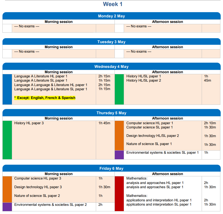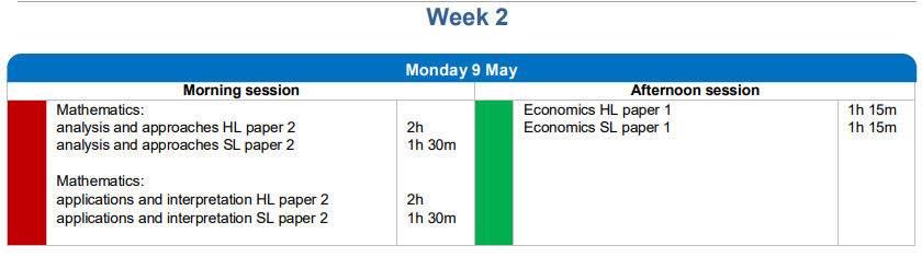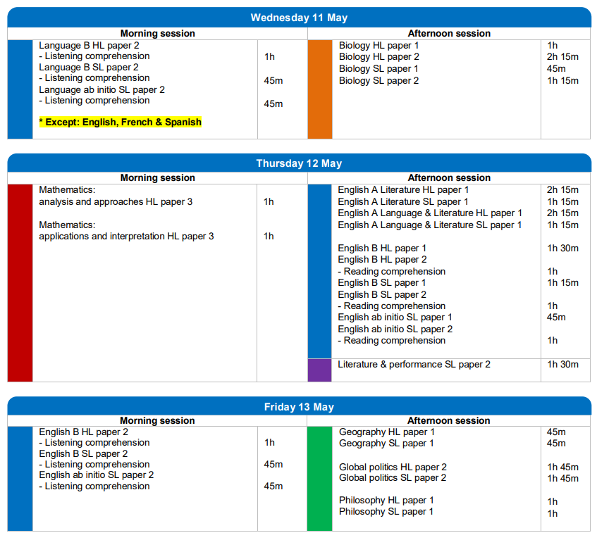 2022年IBDP考試時間表 5月