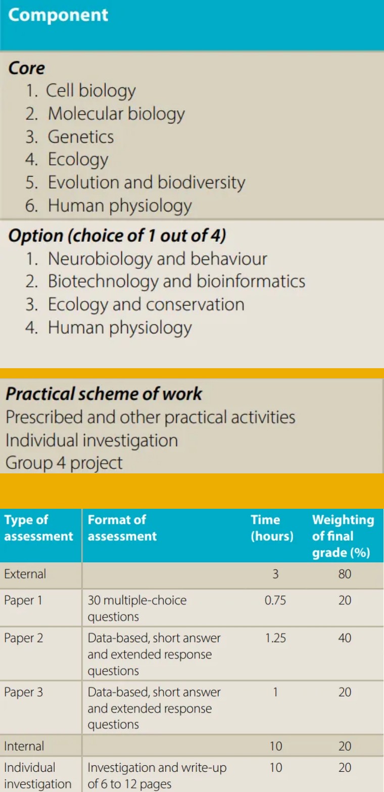注意:無論學(xué)生是學(xué)HL還是SL課程都要從Options中選擇一個(gè)主題學(xué)習(xí)。當(dāng)然,雖然主題一樣,但是與SL學(xué)生相比,HL學(xué)生還是需要在SL的基礎(chǔ)上再學(xué)些拓展內(nèi)容。