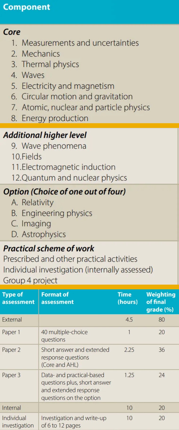 首先在HL的考綱當(dāng)中我們可以看到比SL要多4個(gè)章節(jié), 而這12個(gè)章節(jié)是對(duì)于理解高等物理是非常重要的。 這也是為今后一些學(xué)生去學(xué)習(xí)計(jì)算機(jī)物理相關(guān)的專業(yè)所必要的一些基礎(chǔ)知識(shí)。